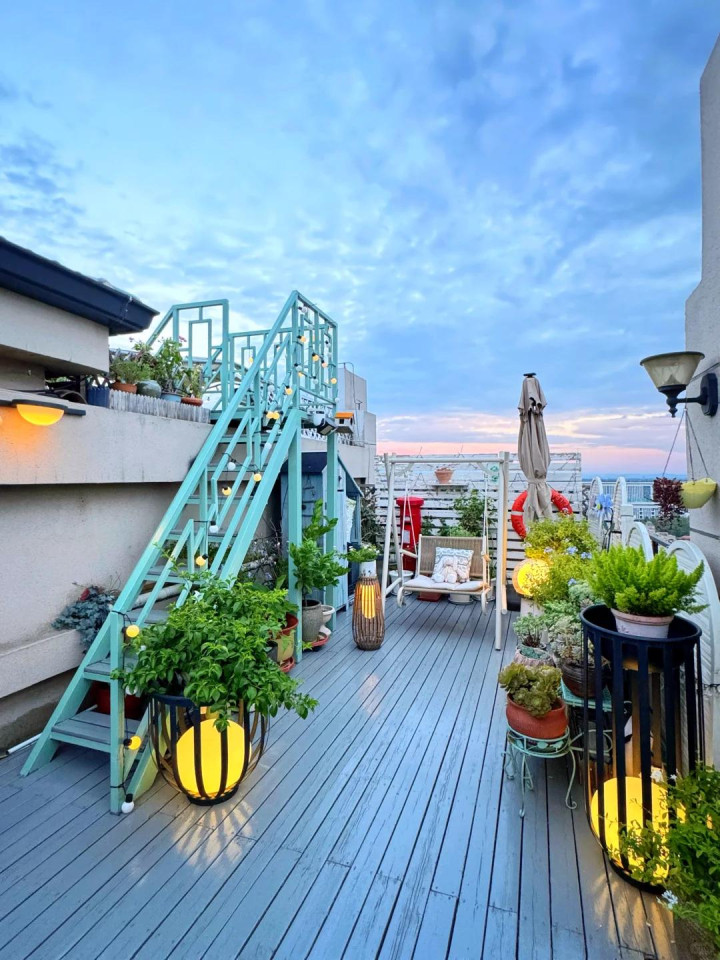 空荡荡的露台要变成乐园,得花点心思。主人没请设计师,就按着自己的喜好一点点捯饬。