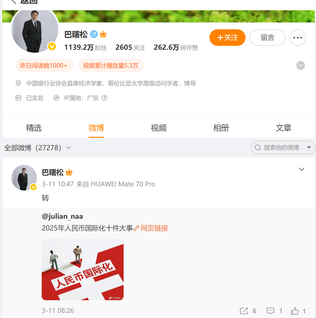 而根据巴曙松个人微博,他最后一条微博停留在3月11日。金石杂谈查询发现,他此前几乎每天都更新微博,甚至一天好几篇,最晚三五天也要更新一篇。